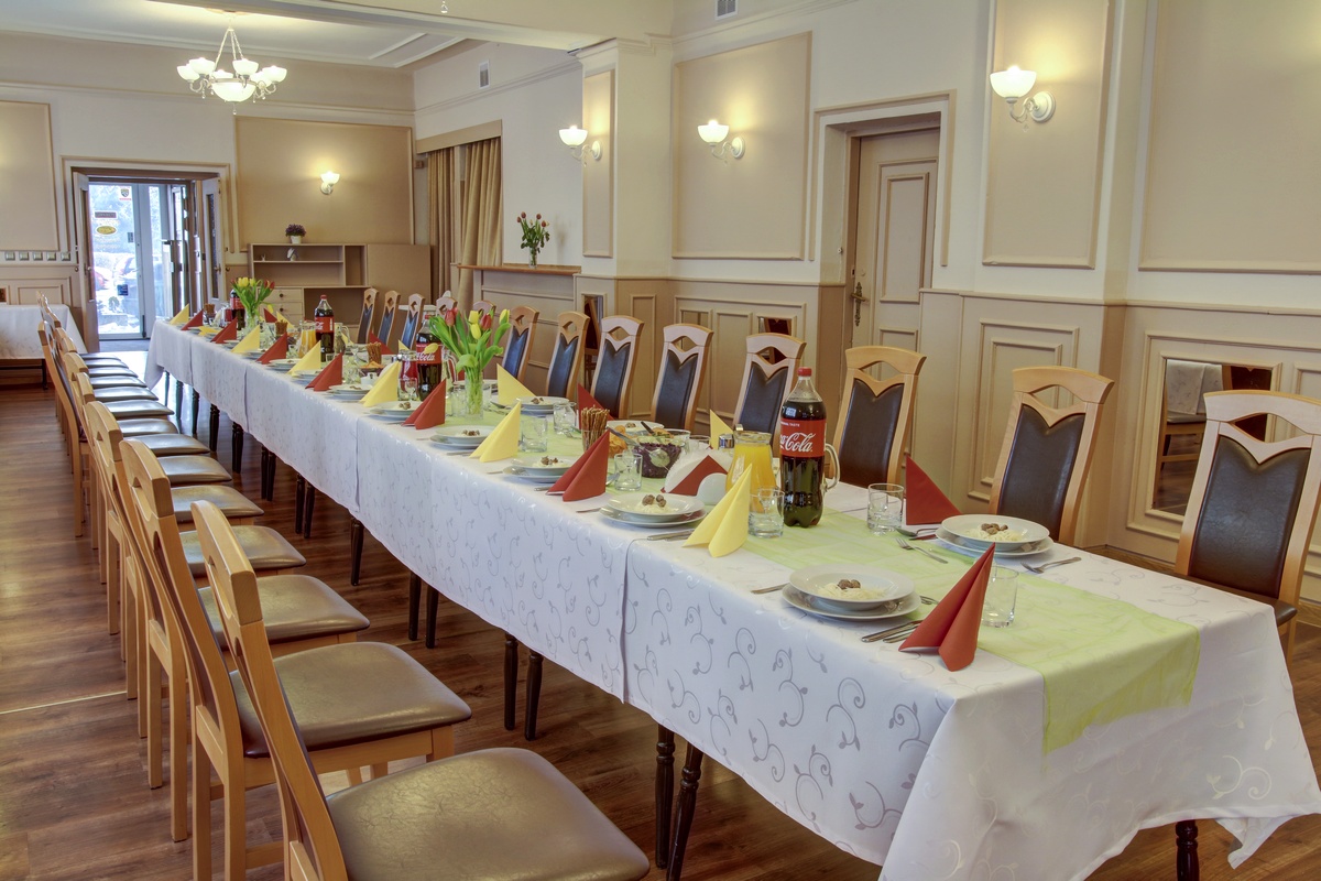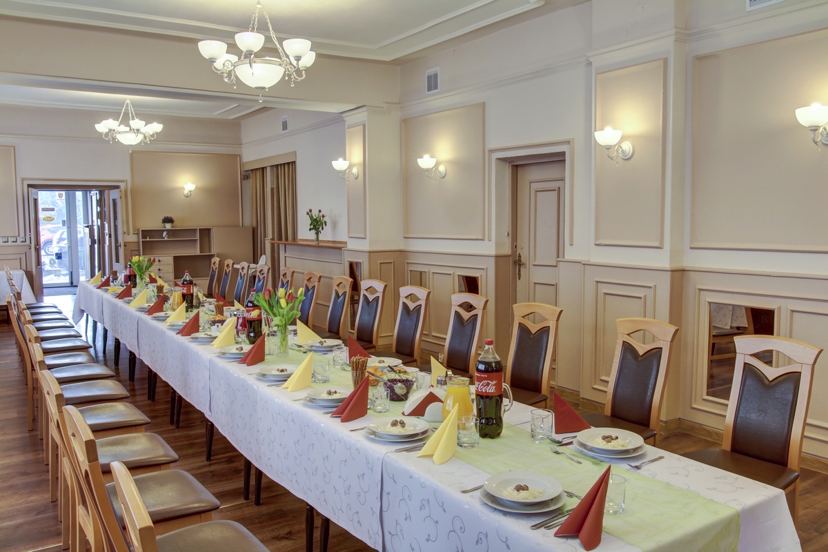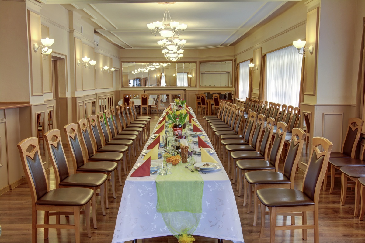 Nasza sala restauracyjna przystosowana jest do organizacji różnego rodzaju imprez okolicznościowych i pomieści nawet 75 osób.