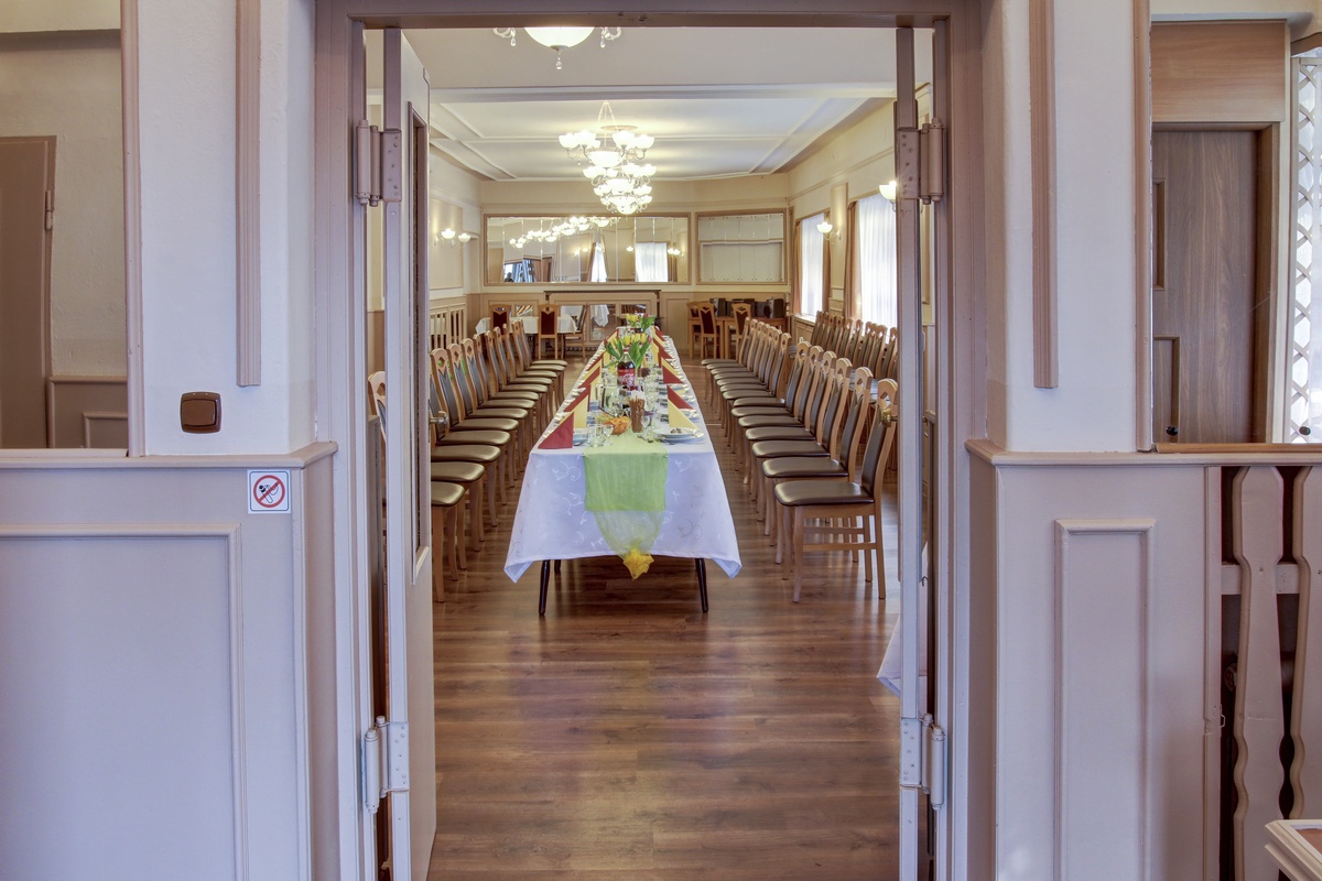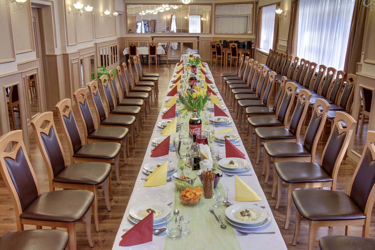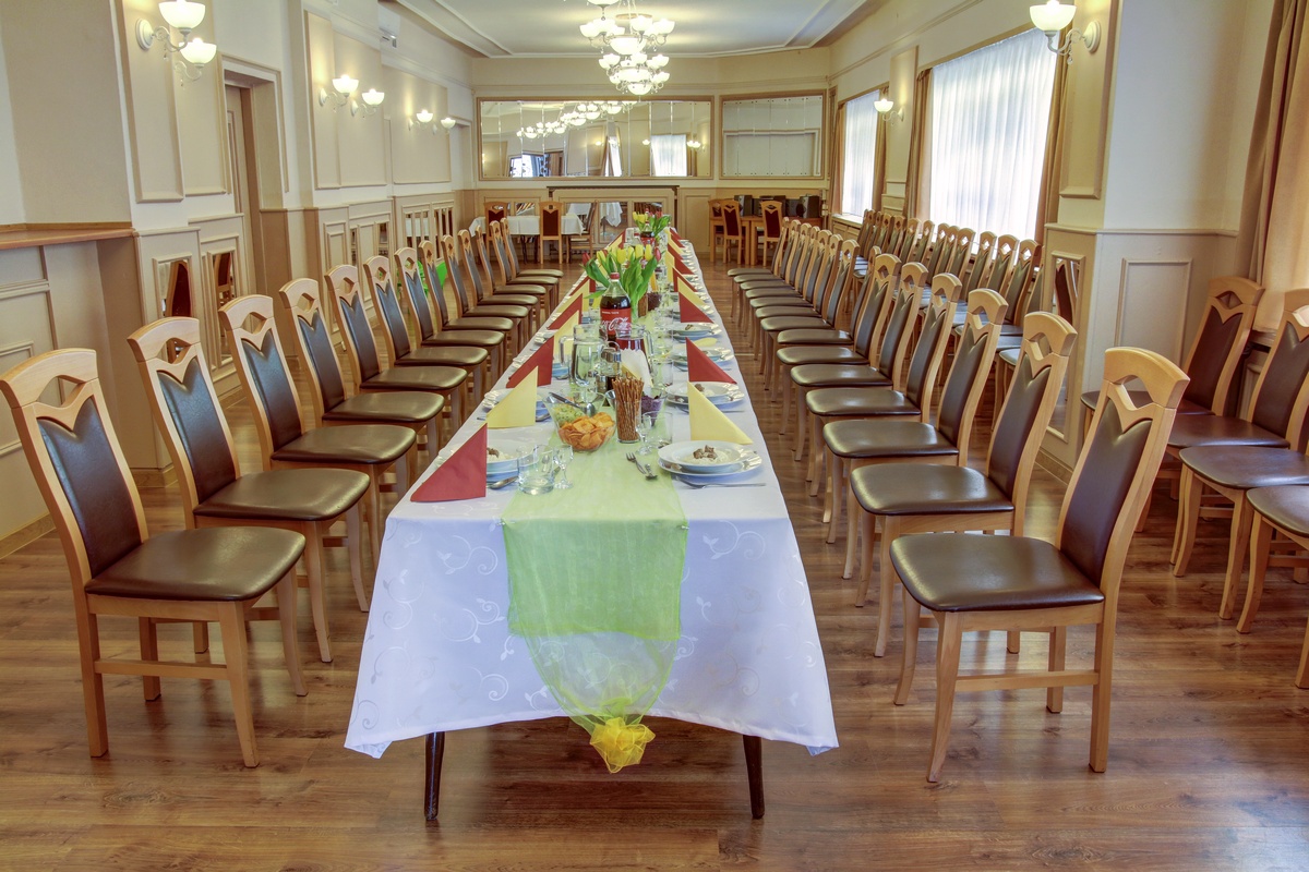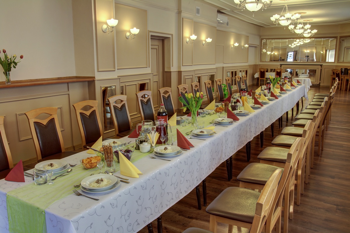 Nasza sala restauracyjna przystosowana jest do organizacji różnego rodzaju imprez okolicznościowych i pomieści nawet 75 osób.